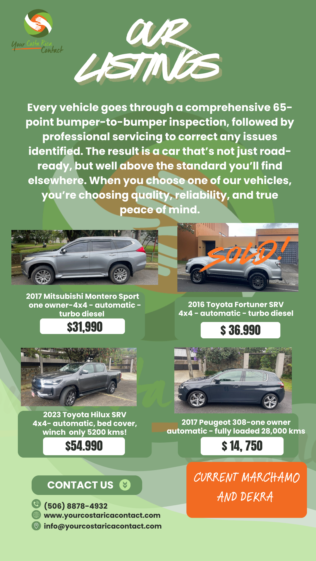 If you would like more information or photos about any of these vehicles, please send an email to info@yourcostaricacontact.com.